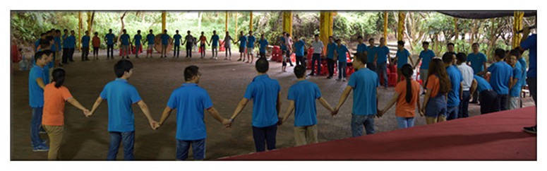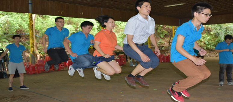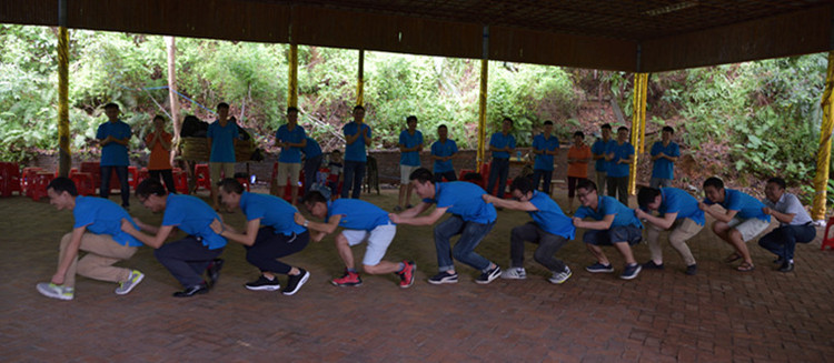 在教练的指挥下,全体成员有序的分成4个队伍,并用最短的时间证明我们是一个真正的团队。接下来呢,就是一系列有趣、放松、考验团队精神的热身活动及趣味游戏。